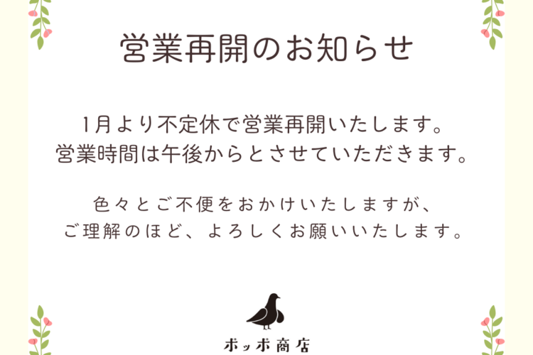 営業:4月は不定期営業といたします。